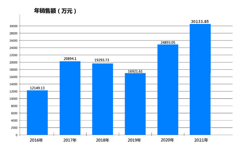 隨著不斷地資金投入與技術(shù)投入,企業(yè)的年銷售額穩(wěn)步增長,至2015年,全年銷售額已破億;并于2021年,突破3億;2024年突破3.5億。