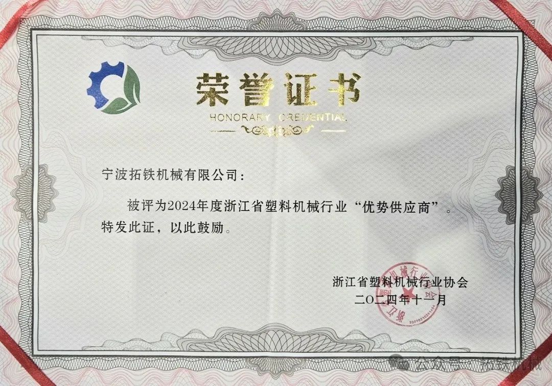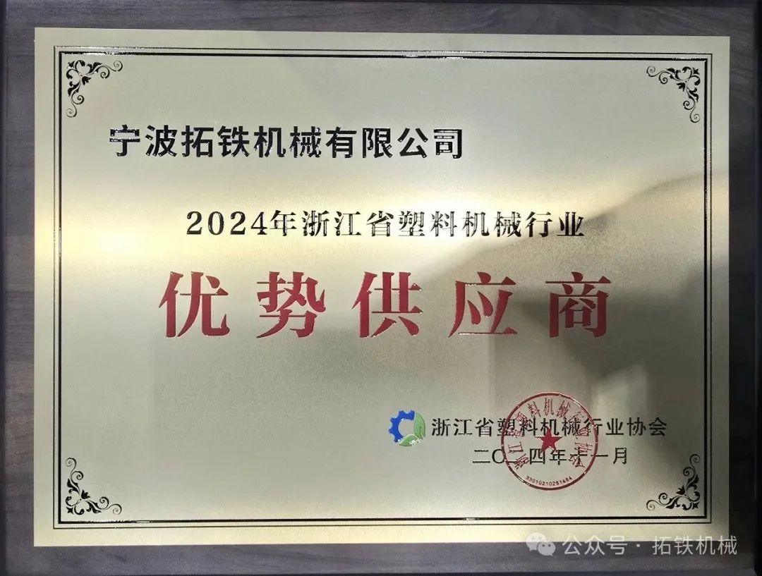 喜報(bào)!拓鐵再獲浙江省塑機(jī)協(xié)會(huì)“優(yōu)勢(shì)供應(yīng)商”榮譽(yù)
